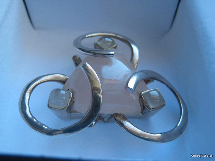 Vendo pendente para fio original, tipo flor em prata contrastada e quartzo rosa, em estado NOVO, pois nunca foi usado(presente que tem estado guardado). Diâmetro = 4cm.