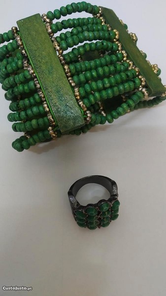 Preço: 5 €Pulseira e anel cor verde - Bom estado