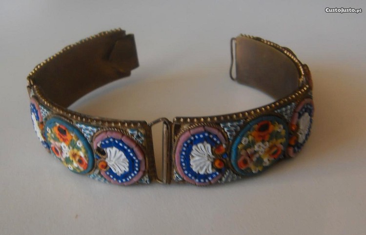 RARA! INVULGAR! Pulseira Antiga feita à mão em micromosaico italiano