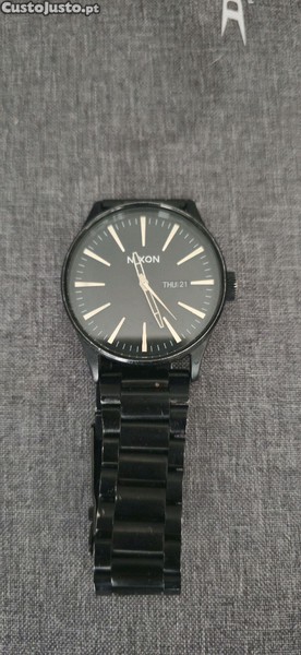 Vendo relógio nixon sentry SS comprado novo na Ericeira surf shop, a funcionar perfeitamente mas com algumas marcas de uso. Foi substituída a pilha e efectuado o teste de estanquidade na marca a cerca de 2 meses