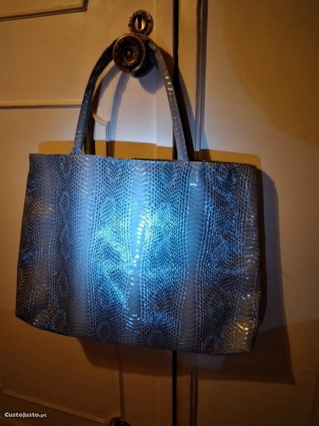 Saco de senhora novo, padrão cobra plastificado e forrado, cinza, brilhante, muito bonito, com largura 45cm, 35cm de altura.