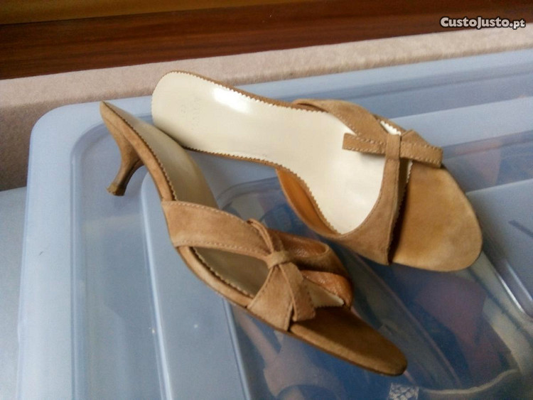 Sandálias de pele camurça e salto fino (4 cm), usados só uma vez, da marca ZARA. São número 36.