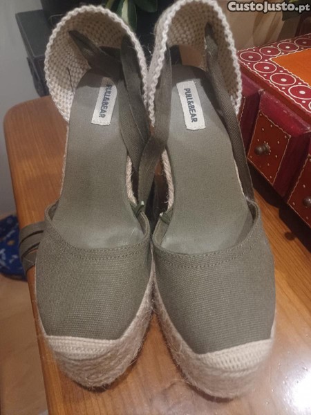 Preço: 18 €Sandálias em verde tropa de cunha alta da Pull&Bear