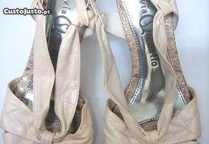 Sandálias originais, marca Sílvia Rebatto, cor bege N. 37.