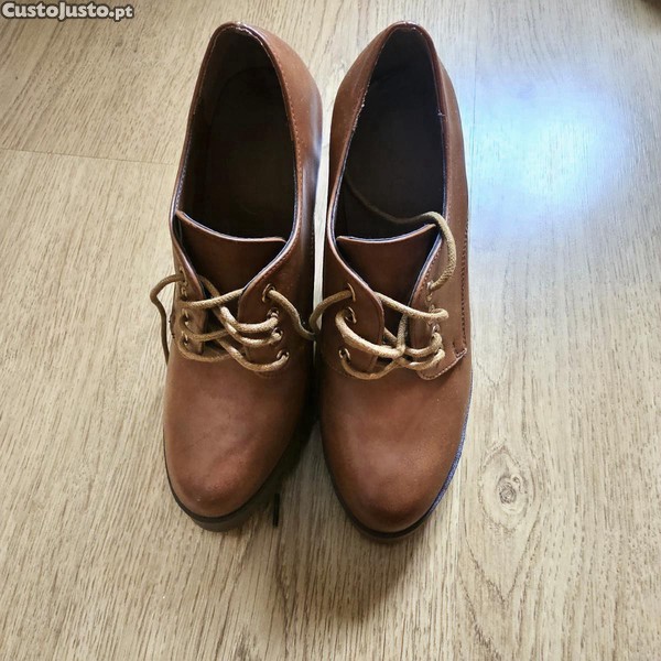 Sapato com salto alto e atacadores da marca Moda G Y, de cor castanho. Usados apenas uma ou duas vezes. Encontram-se em muito bom estado.