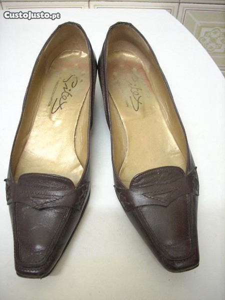 Sapatos cunha para senhora, marca Sitex, em pele, cor castanho e N. 36.