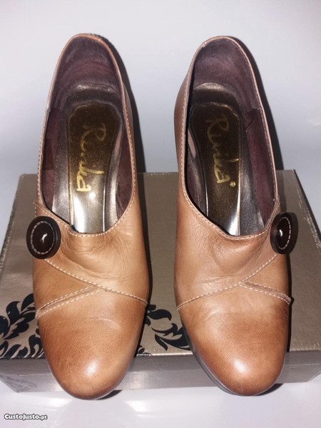 Sapatos Ruika, em pele,cor camel, tamanho 38.