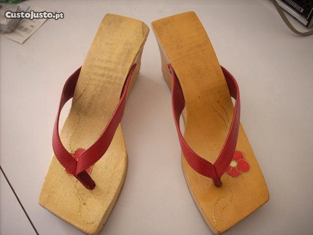 Preço: 7 €Tamancas pele e cunha de madeira tamanho 36