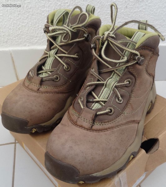 I) Artigo: Ténis Botas , da marca Timberland , n.o 34 ou 35 , de cor castanho claro, de pele Nubuck, e, com sola de borracha aderente. Ideal para actividades ao ar livre (outdoor), caminhadas, escuteiros, montanhas, pisos irregulares, condições atmosféricas adversas, impermeáveis, etc..