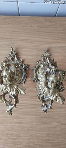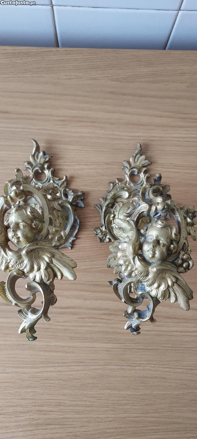 Conjunto ganchos para prender reposteiros. Em cobre, antigos com caras de anjos esculpidos, muito bonitos.