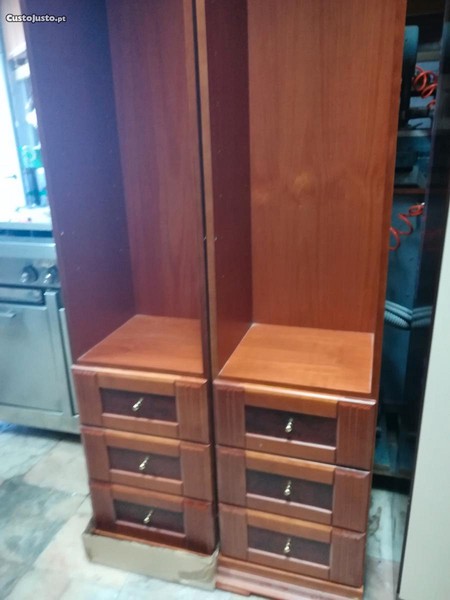 2 Módulos novos com Prateleiras e 3 gavetas em madeira. Na foto estão os dois módulos.