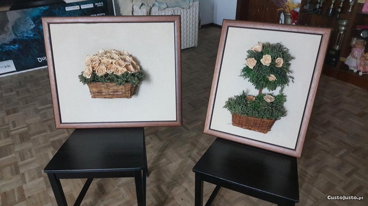 2 Quadros de uma árvore, com flores rosa, em 3D.