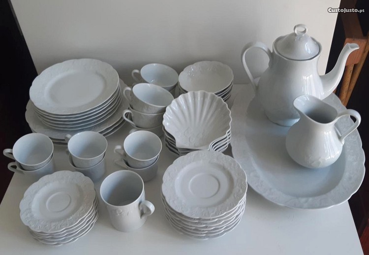 49 Peças Porcelana Lierre Sauvage CNP Serviço Branco Relevos Floridos