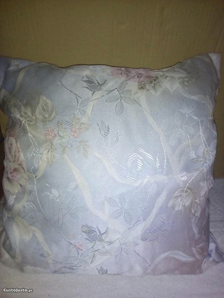 Preço: 4 €almofada azul claro c/flores acetinada