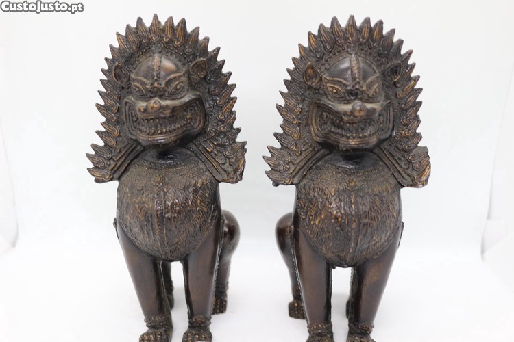 Preço: 599 €Antigas Estátuas Foo Dog, Leão da Sorte Par Guardião Cambodia Dinastia Khmer Budista