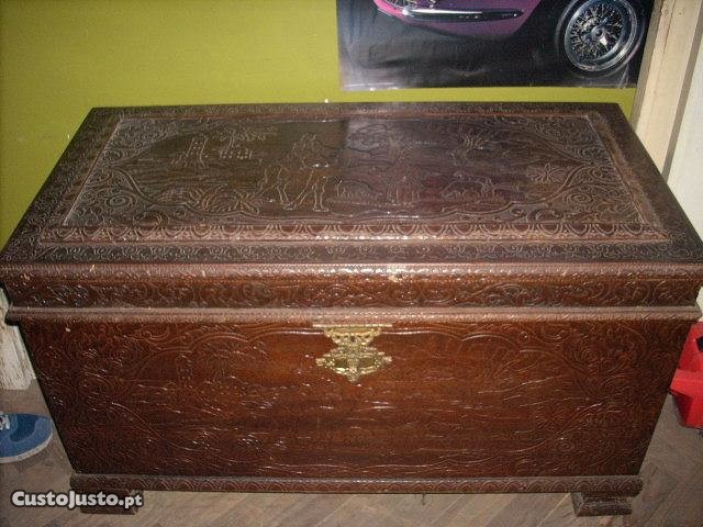 Arca antiga trabalhada em madeira maciça 105x53 cm