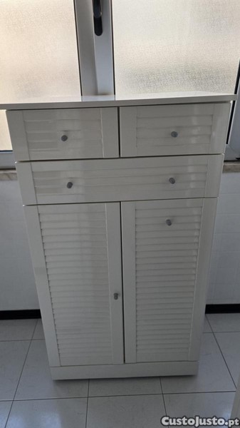 Armário branco lacado de apoio de lavandaria ou WC com TULHA