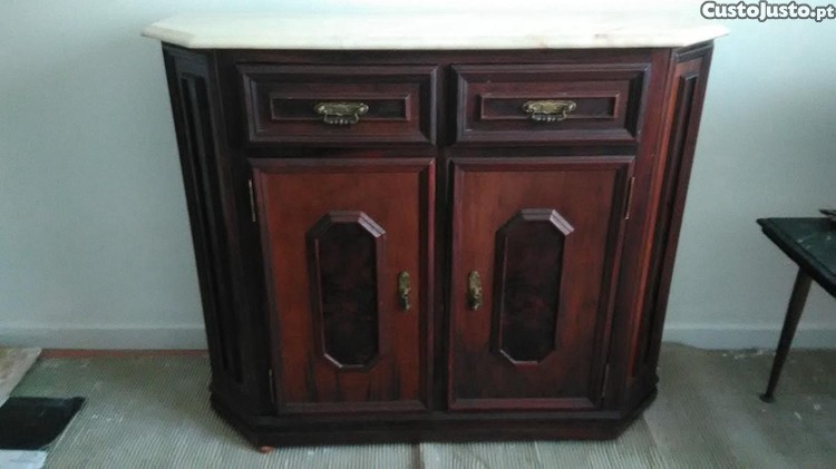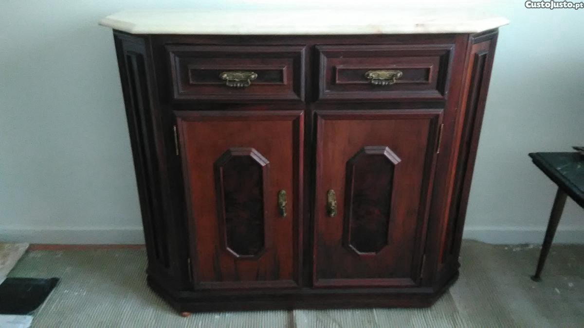 Armário/Móvel de entrada/Sapateira com rodas, tampo em pedra mármore, duas gavetas e duas portas.