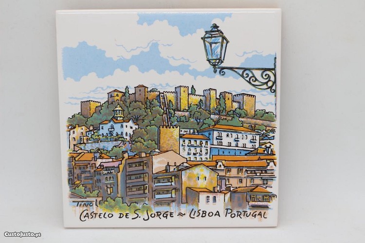 Azulejo Artesanato Português de Pendurar Vista Lisboa Castelo S. Jorge, pintado há mão pelo Tino