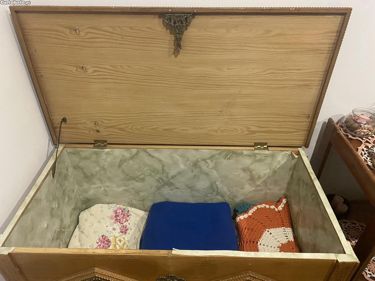 Lindo baú em madeira, serve tanto como decoração e arrumo .