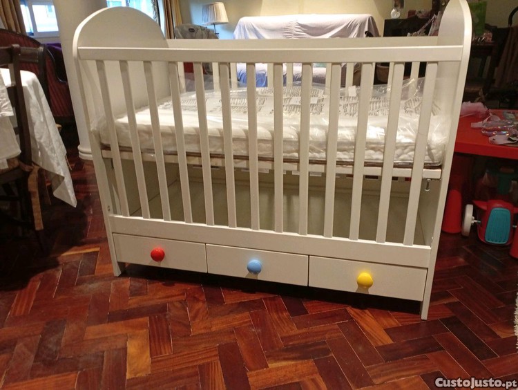 Inclue colchão molas ensacadas p/berço, 60x120x11 cm com capa lavável, também comprado no IKEA.
