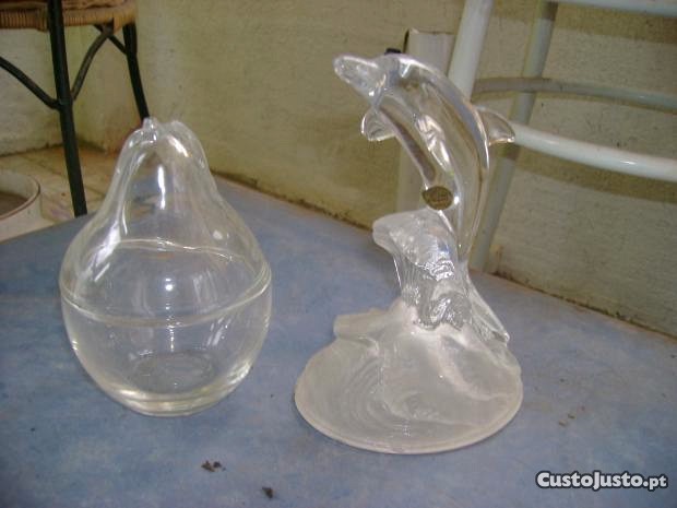 duas peças Cristal d'Arques, um golfinho e uma pera. Muito bonitos e finos
