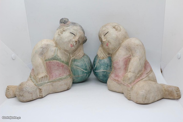 Graciosos bonecos entalhado em madeira, original da Tailândia. Com pintura sobre madeira, as figuras apoiam-se sobre uma confortável almofada, representando assim o processo de prosperidade (boneco) e Sabedoria (boneca). Um ótimo presente que enfeita e ao mesmo tempo contempla um significado de crescimento e evolução pessoal. Disponível na versão feminina e masculina.