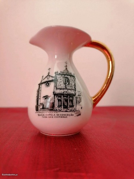 Bonita jarra em loiça com 7 cm com imagem da Capela da Conceição Braga Casa dos Coimbras
