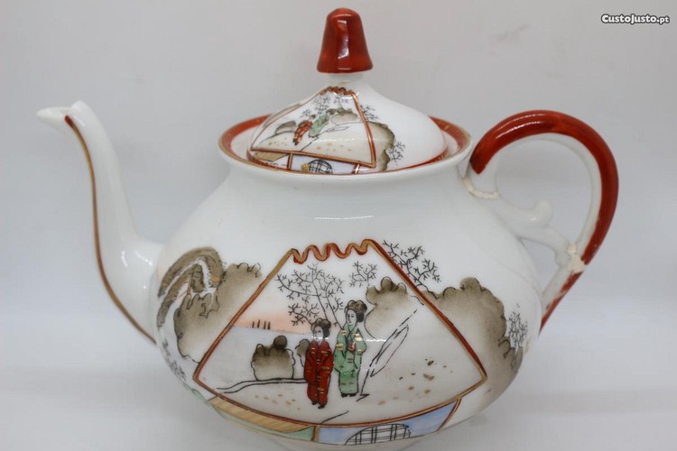 Preço: 50 €Bule Chá Vista Alegre motivos paisagem Chinesa e Ouro 1881