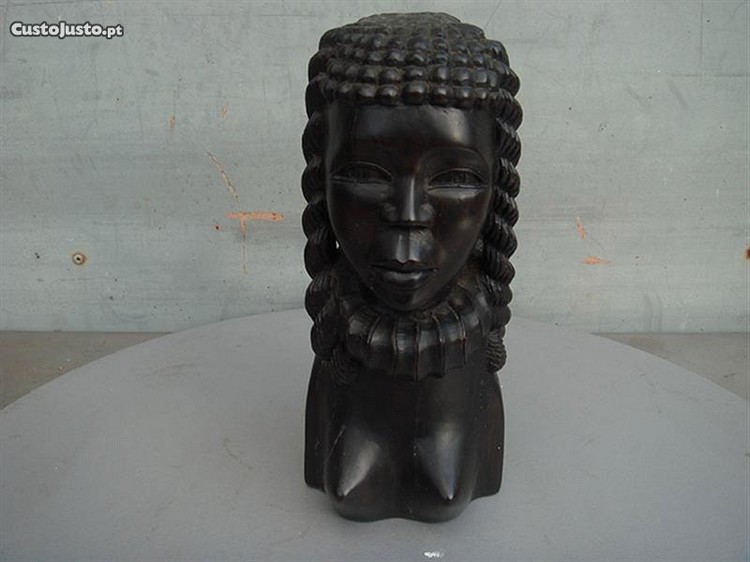Preço: 80 €Busto feminino com tranças esculpido em pau preto