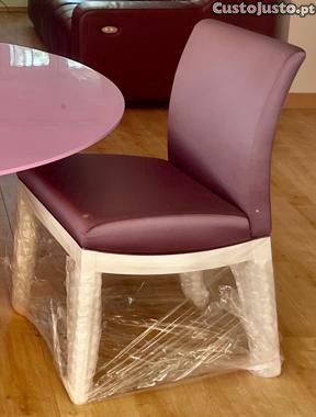6 cadeiras de sala roxas que harmonizam perfeitamente com a mesa, criando um conjunto elegante e contemporâneo. O tom uniforme e o design moderno tornam esta combinação ideal para refeições e momentos de convívio na sua sala de jantar. 6 cadeiras disponíveis. Preço à unidade.