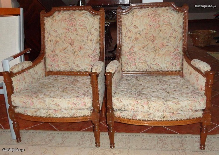 Preço: 480 €Cadeirões Bergeres Séc. XIX Luís XVI