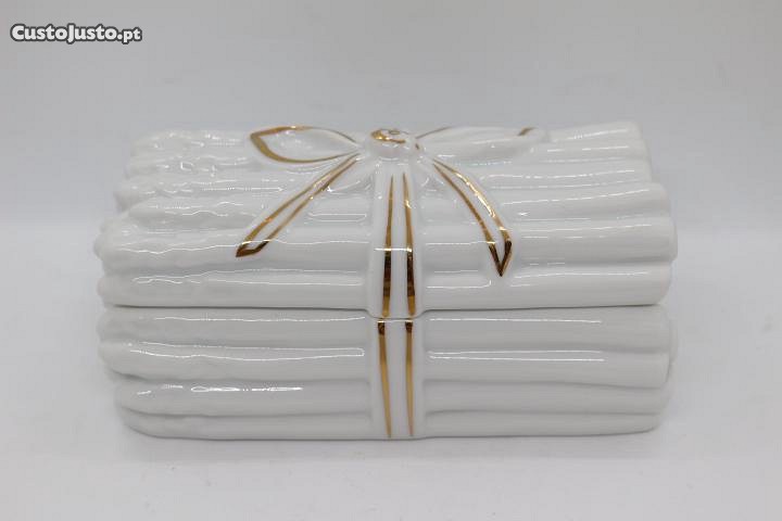 Caixa de com formato de Espargos Branca e Ouro com Laço Vista Alegre 1980