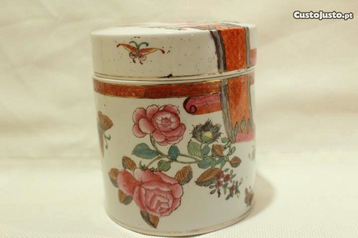 Caixa com tampa em Porcelana Chinesa de exportação, do estilo do período Qianlong Família Rosa, com rica decoração floral MARCADA sec XX