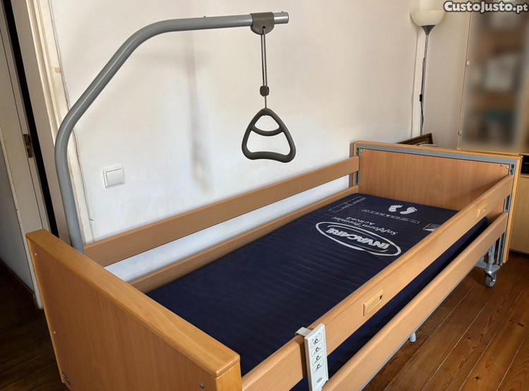 Cama articulada elétrica Invacare, com guardas laterais e colchão Softform. Produto usado em muito bom estado de conservação, com funcionalidade elétrica para ajuste da posição. Ideal para uso em ambiente doméstico, para servir pessoas com mobilidade muito condicionada.