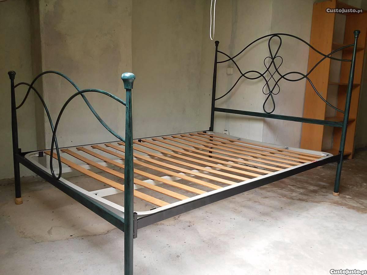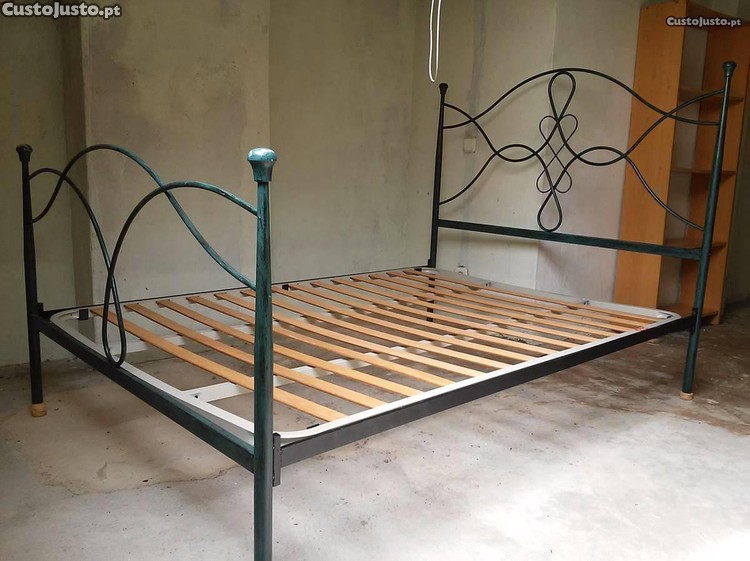 O estrado em madeira e metal, tem as dimensões 195x140cm ou 1,95x1,40m.