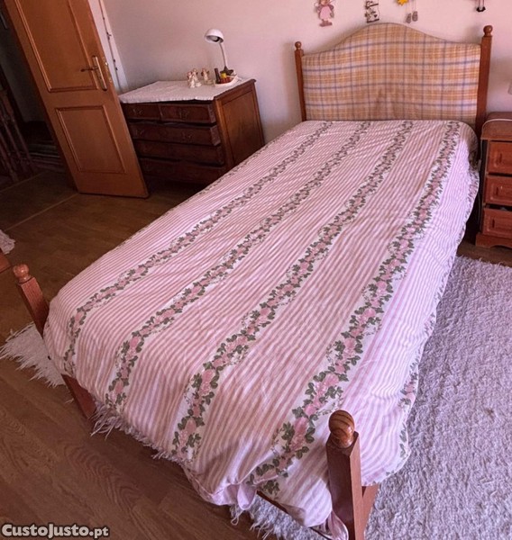 Cama de Solteiro, em madeira e Colchão Ortopédico NOVO