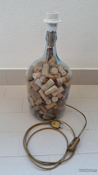 Preço: 25 €Candeeiro 5L garrafão electrificado com rolhas de garrafas de vinho sem abajur.