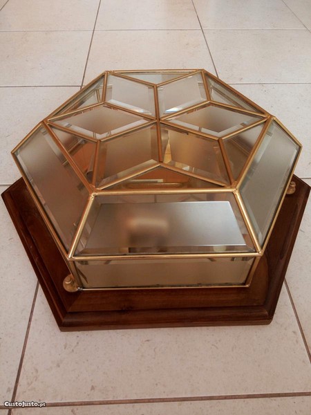 Candeeiro de tecto hexagonal com 44 cm de largura.