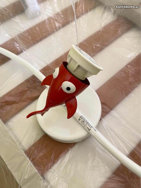 Candeeiro de tecto IKEA, descontinuado. 3 focos de halogéneo, com cobertura em verde, vermelho e azul, com temas de peixes.
