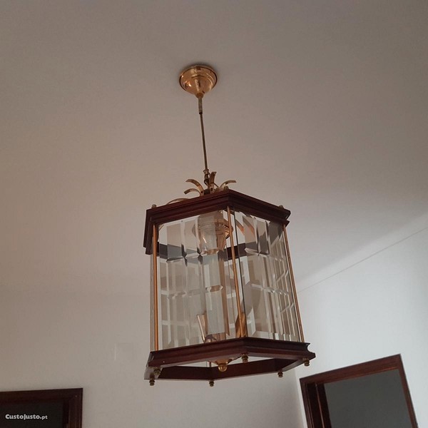 Vendo candeeiro com 6 lados, com algumas marcas, adquiridas com o tempo, com 36 cm x 30 cm.