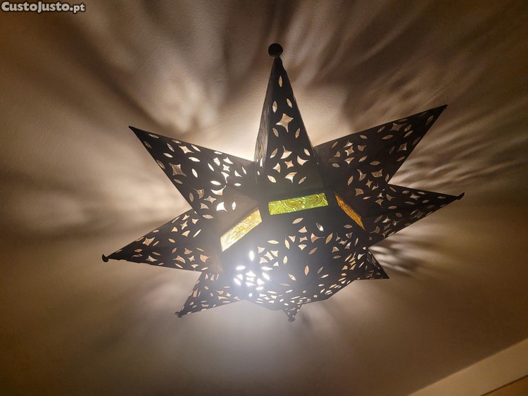 Candeeiro indiano em ferro com apliques coloridos em forma de estrela
