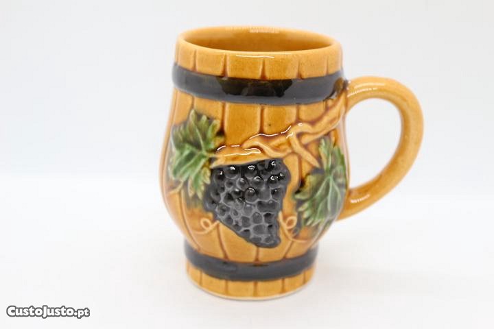 Preço: 50 €Caneca Amarela Faiança Caldas Rainha Barril com Cacho de Uvas com Falo