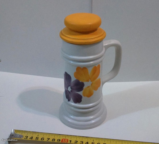 Preço: 3 €Caneca Decorativa Cerâmica c/ Tampa pintada à mão