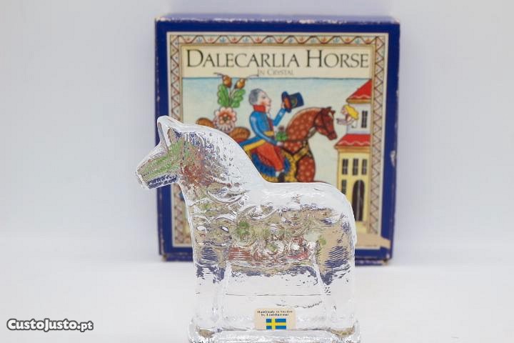 Cavalo Lindshammar Sweden Cristal "Dalecarlia Horse" 10 cm, anos 1950 a 1970, na caixa de origem