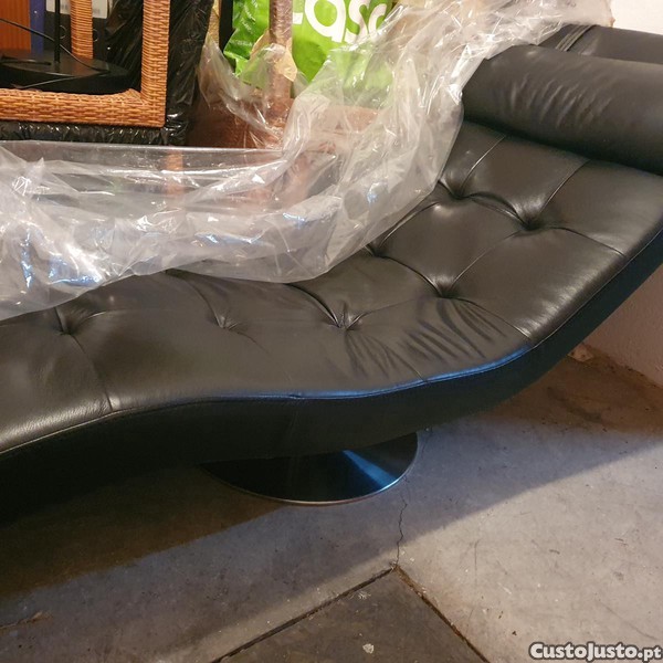 Chaise longue elegante da Antarte, pele verdadeira na zona superior, revestimento em ecopele. O pé necessita uma pequena intervenção para reforçar o soldamento (algo simples). Mas em bom estado e funcional