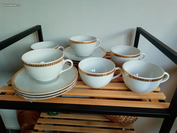 Preço: 80 €Chávenas de Chá "Golden Leaf", Porcelanas Batalha