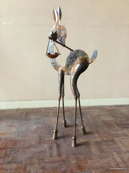 Vendo cinzeiro de pé antigo em metal martelado. Peça vintage (anos 60) decorativa, bonita e original, com espaço destinado à caixa de fósforos, e com as seguintes dimensões (cm): 83,5x34,0