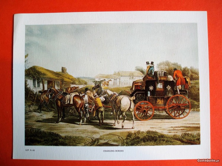 N.66=Changing horses; N.68= All right; N. 69= Hyde park Corner; N. 70=Pulling up to un; N. 71= Royal mail Coach.