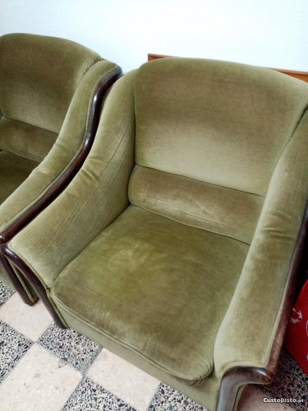 Vendo conjunto de 3 Sofás de cor verde, em tecido aveludado em muito bom estado.